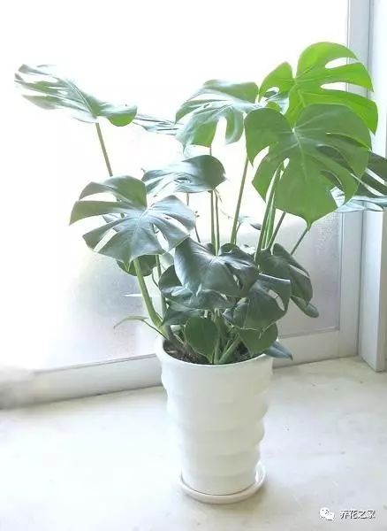龟背竹的叶形奇特,孔裂纹状,非常像龟背而得名,龟背竹在欧美与日本养护它的人非常多,龟背竹的甲醛吸附能力也很强,另外它在夜晚也能吸附二氧化碳,因此很多花友也会在卧室养上一盆,龟背竹在风水上有玄武之说,有增寿、招财的作用,非常适合在客厅养上一盆。(在养花之家微信公众号发送:龟背竹 可以了解龟背竹的养护知识)