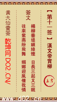 汉文帝,一个施德政、亲人民的皇帝,在位二十三年,实行“与民休息”的政策,减轻地税、赋役、刑狱,使国家在平定“诸吕之乱”后,国计民生得以复苏,农业生产迅速发展。更难能可贵者,在勤政亲民之余,汉文帝最喜欢欣赏杨柳的美态,为了提高工作效率,他用“分段睡眠法”,每日三眠三起,醒后必欣赏绿柳垂堤,迎风摇动,紫燕在其间飞舞的美好景色。此签有万事如意之象,此乃心欢快乐之景象也。