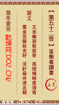 目前处于时运不济之时,度过无数个孤独寂寥的日子,意味沉寂地等待,终于等到好运的到来,大约会在秋季,而且是忽然间就会有好运来,将原来停滞不前的运势,一下子就打通了,而且轻松容易地过生活,完全没有生计上的问题,好运或许来自北方,或是必须往北方去,一切在命运中,自会有安排,目前的困顿将是未来顺意的基石。
