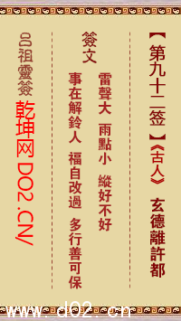 吕祖灵签第九十二签 吕祖灵签解签92