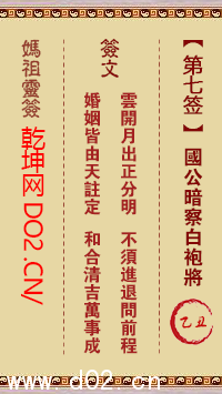 上一篇:妈祖灵签6签解签 妈祖灵签第六详解 下一篇:妈祖灵签8签解签 妈祖灵签第八详解